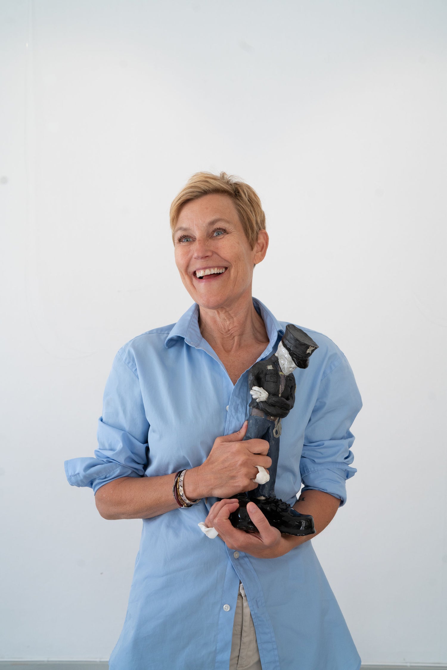 As with most of Helena’s creations, everything comes in periods. First, there was the “pot period,” followed by the “coffee cup period.” After that came the “lamp base period.” When Helena was asked to make trophies for a women’s network, she says, “my head caught fire.” In the midst of a brain full of chaos and a bit of panic over what a trophy could become, the “little man/little woman” sculpture was born