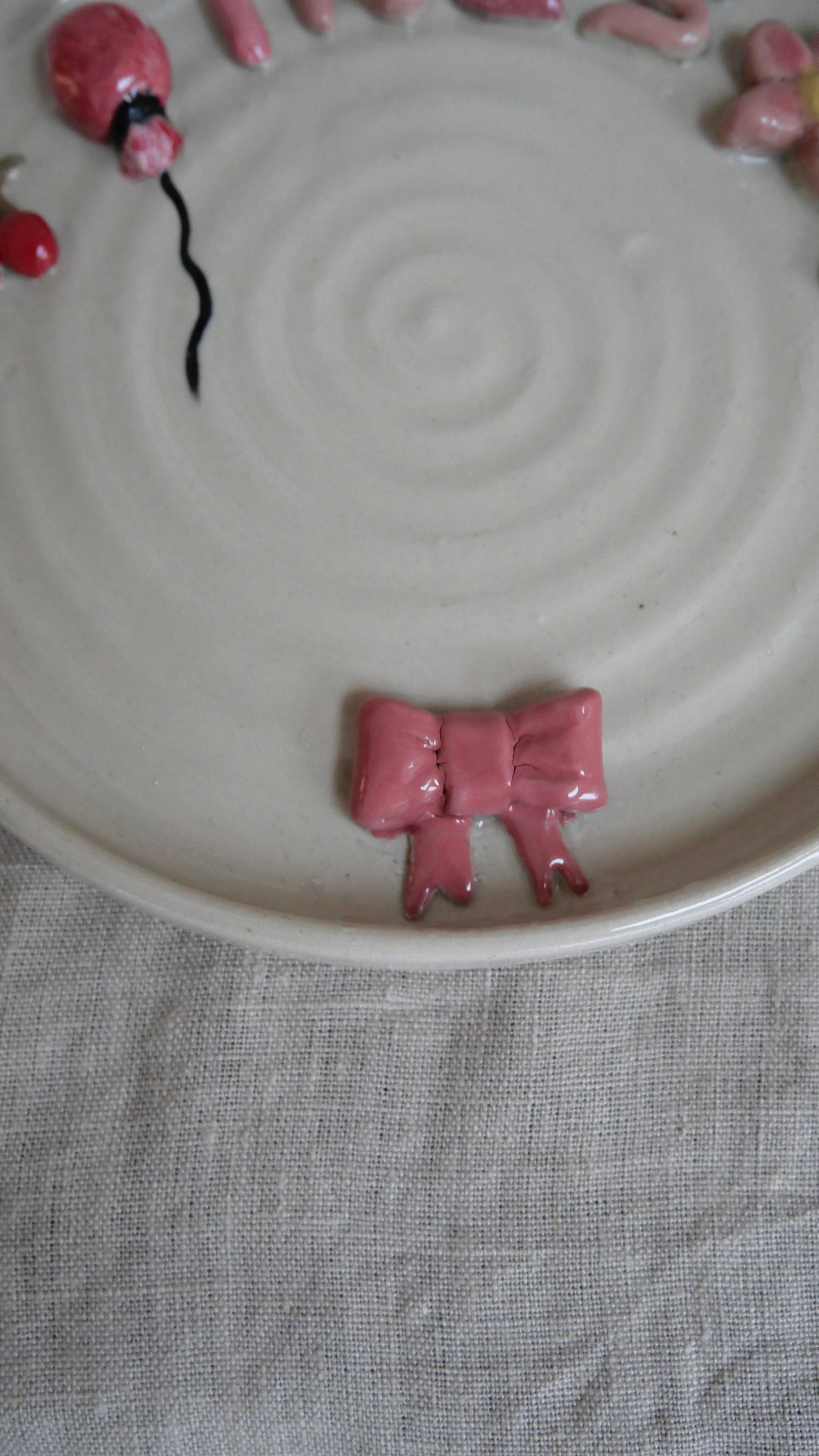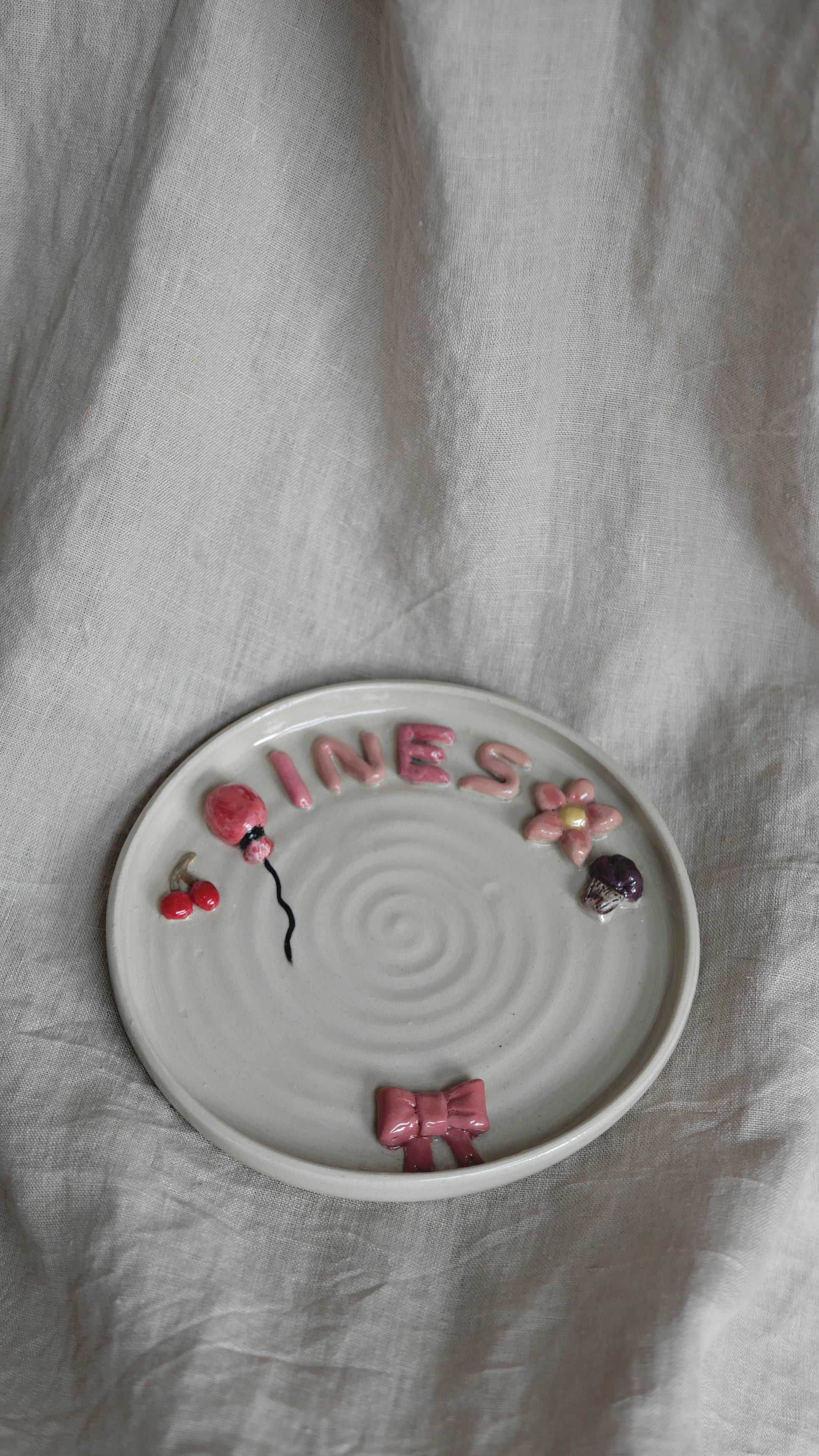 Please specify the name, the items you want to be added to the plate (maximum of 5) and the color scheme in the input field (or in a separate email along with your order number)