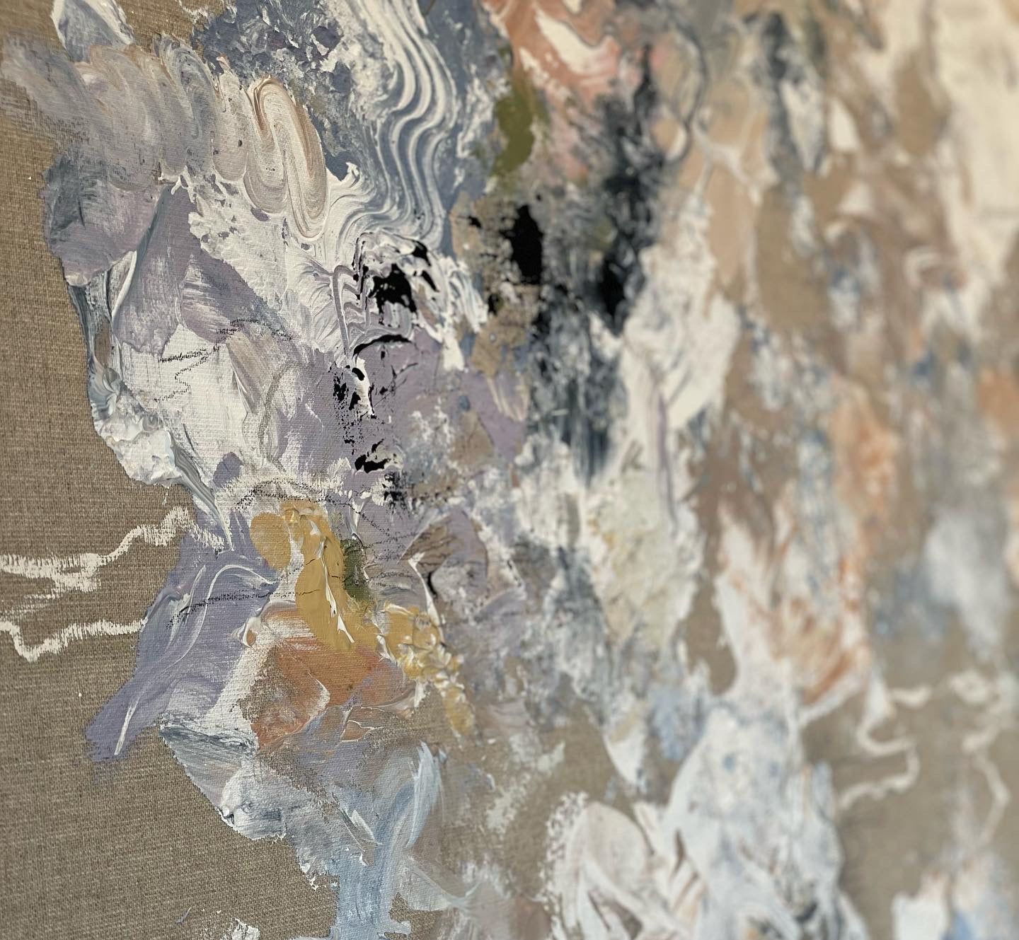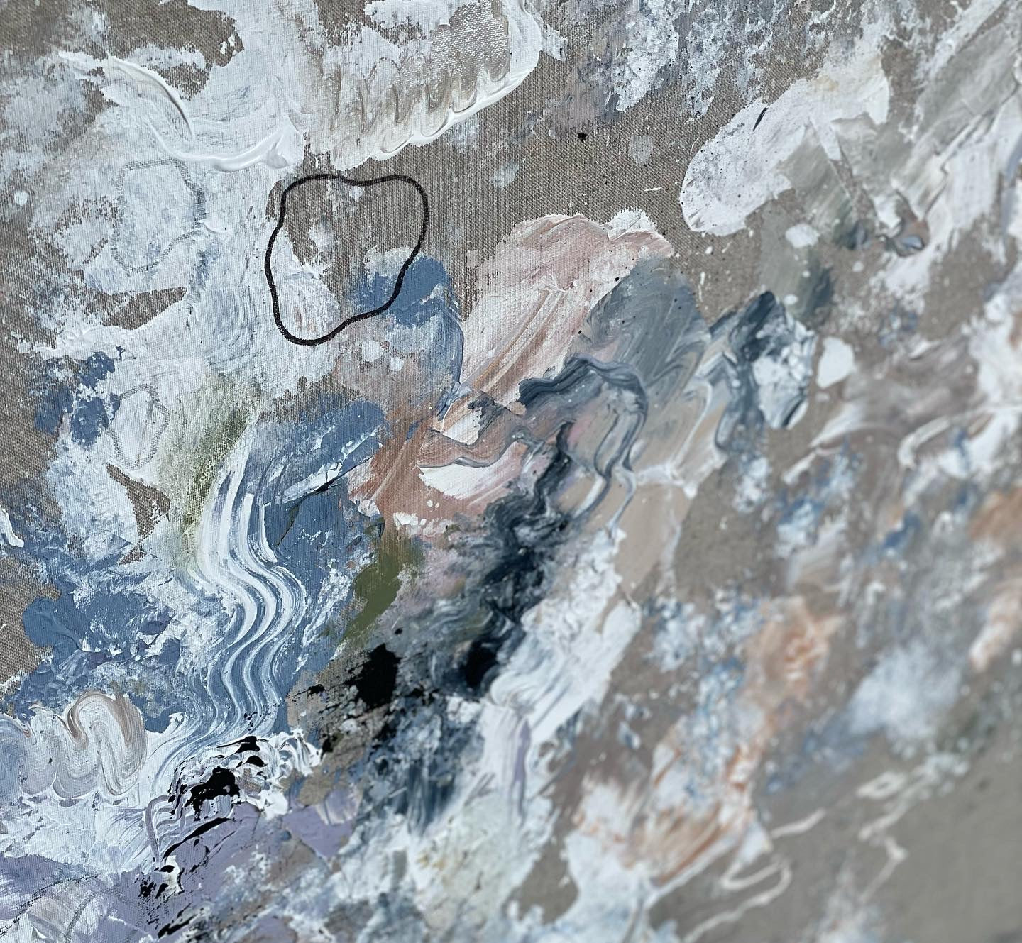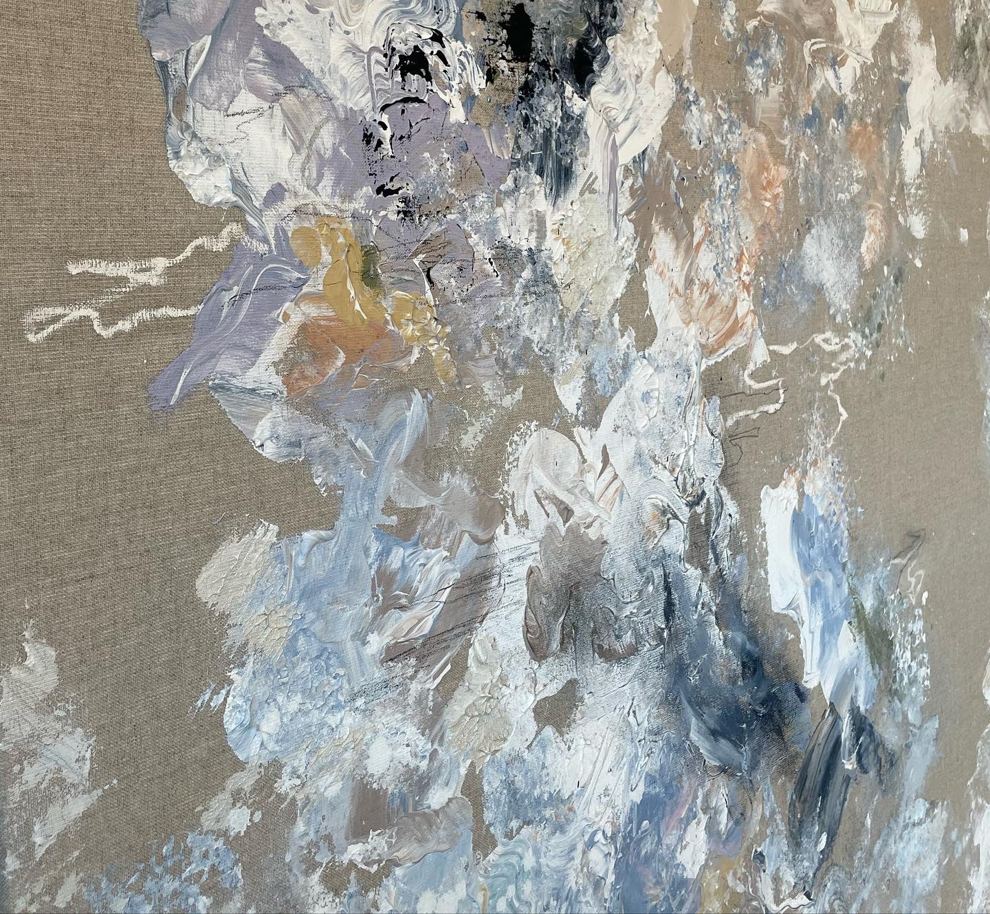 Mixed media on a raw linen canvas