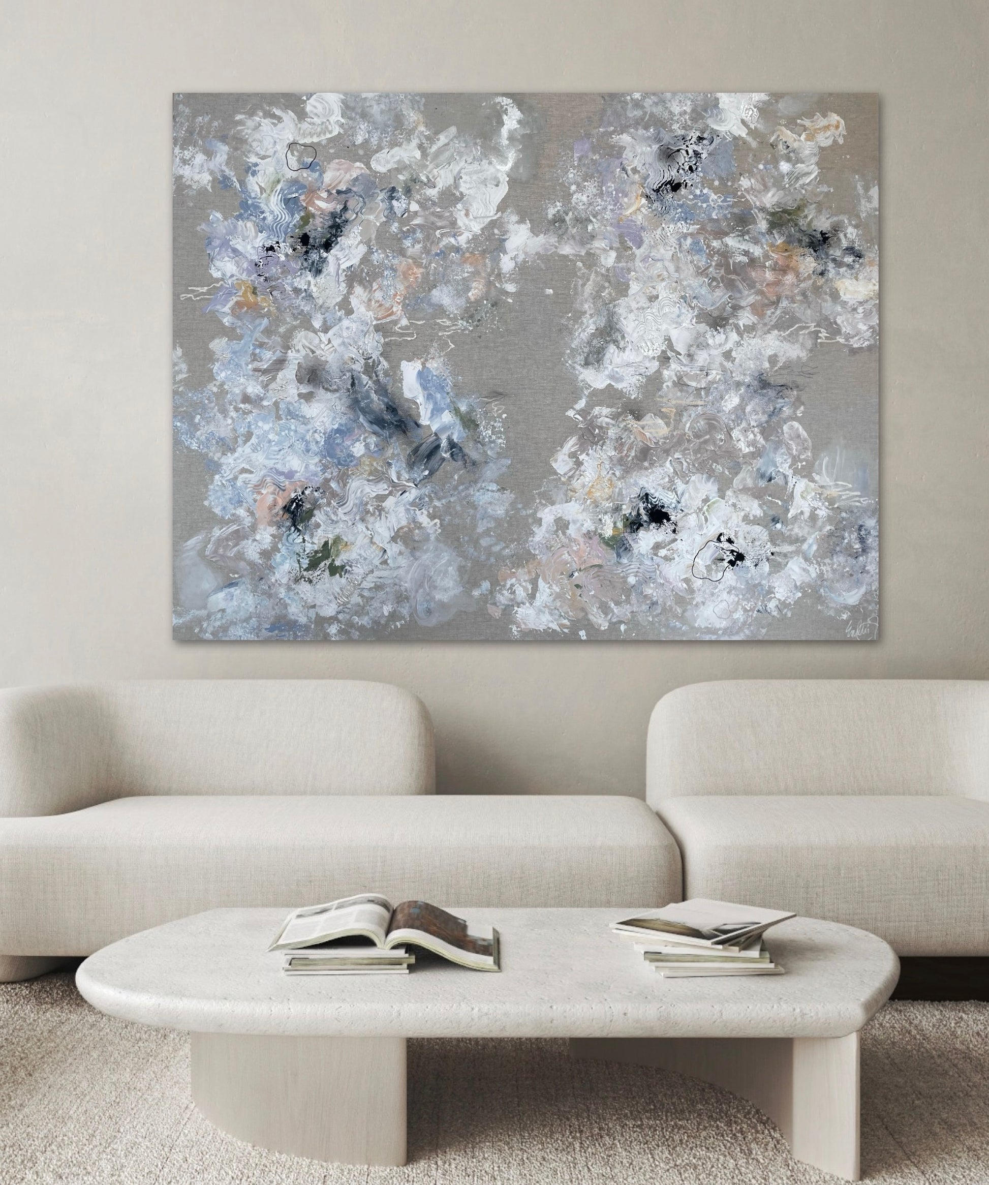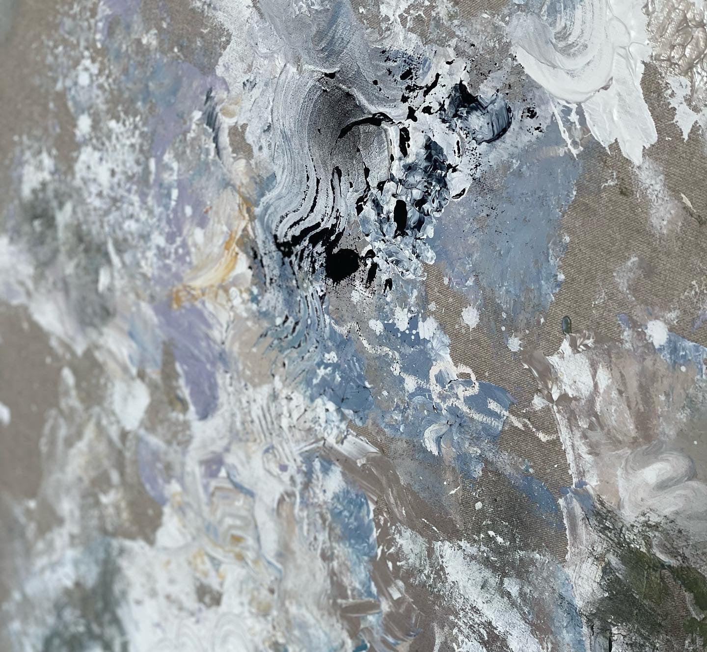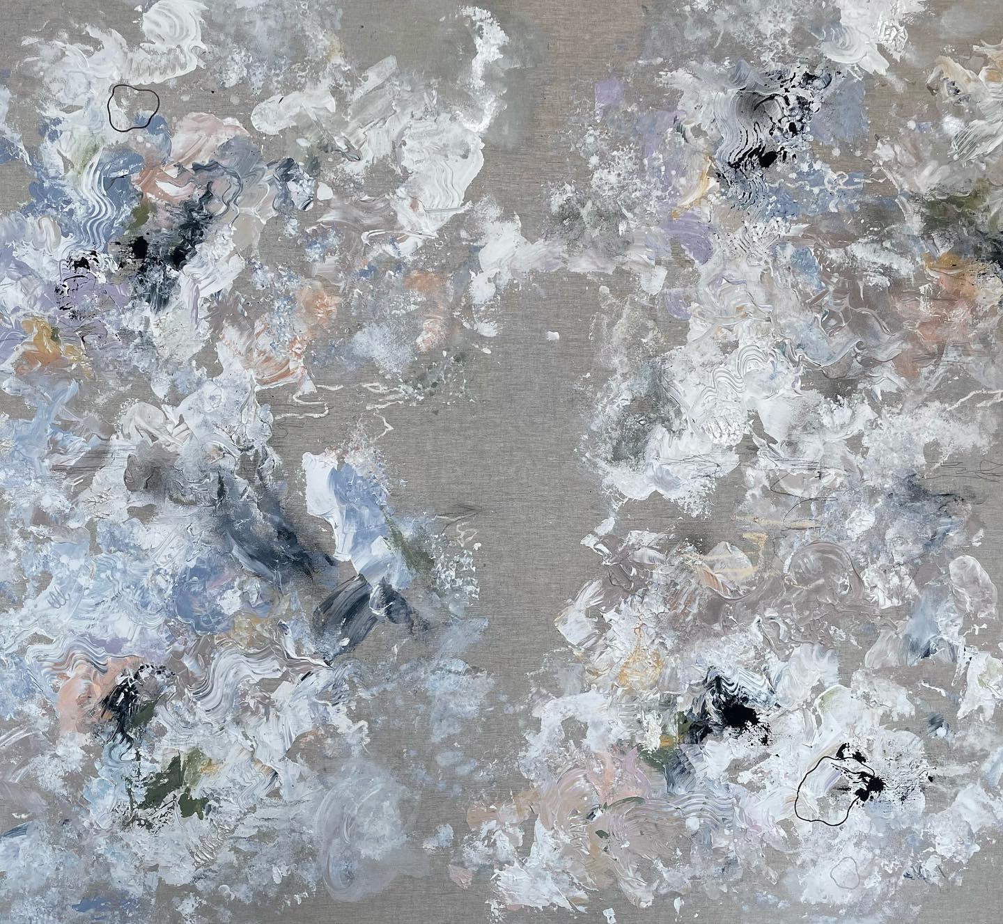 Mixed media on a raw linen canvas