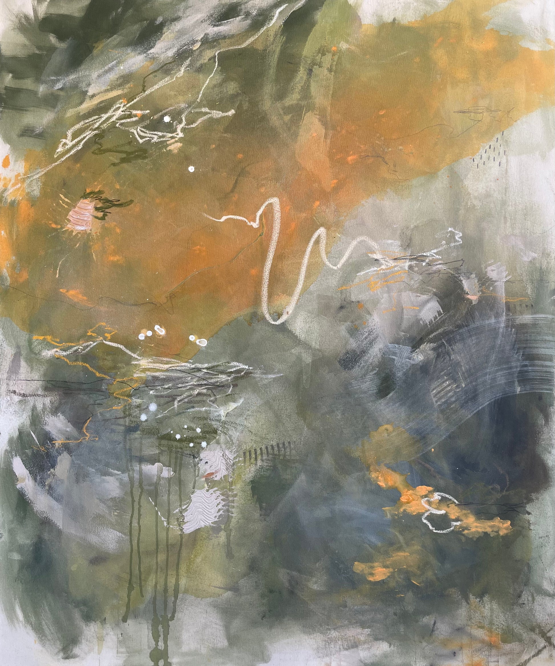 Mixed media on a raw cotton canvas