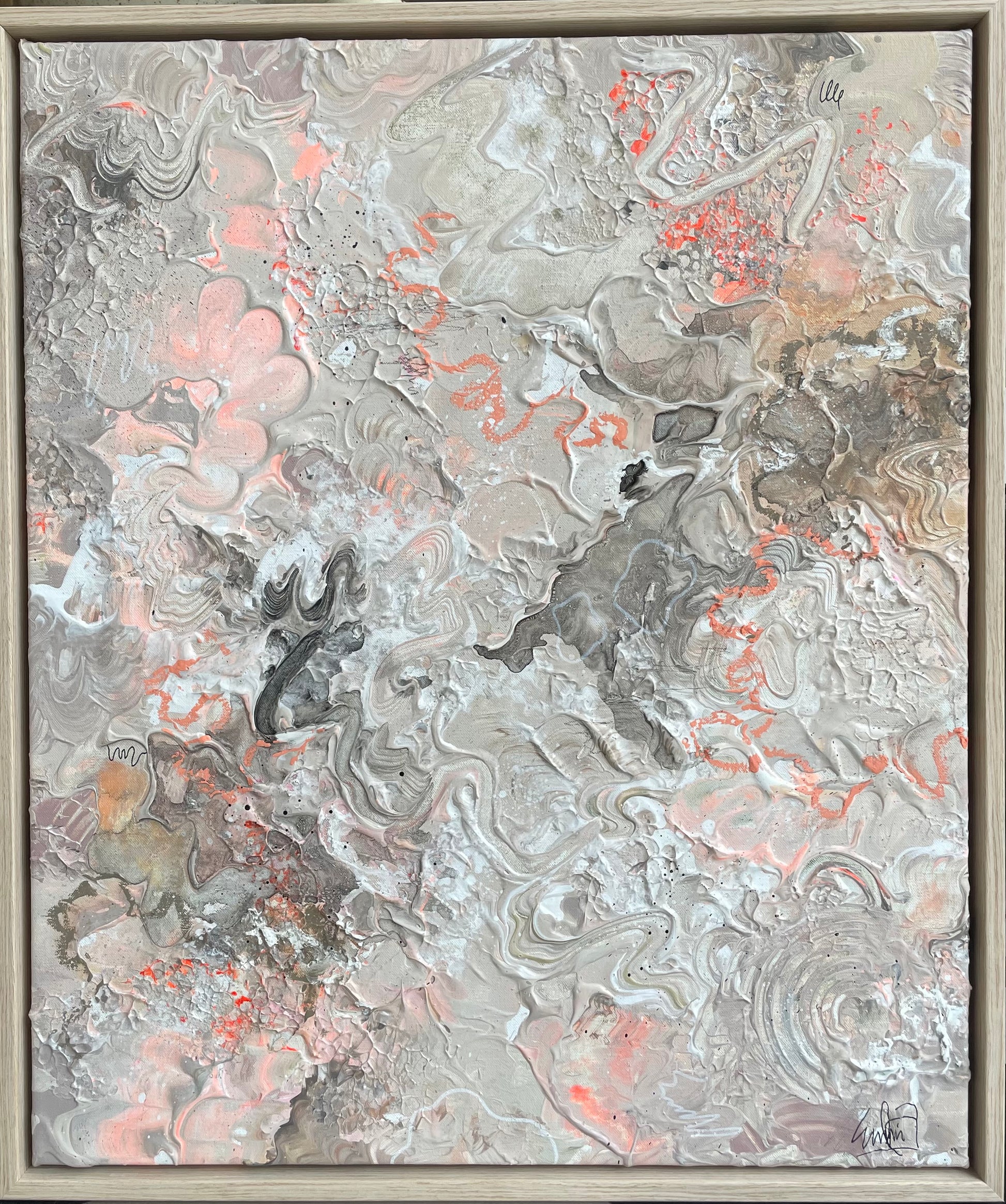 Mixed media on a linen canvas with an oak frame